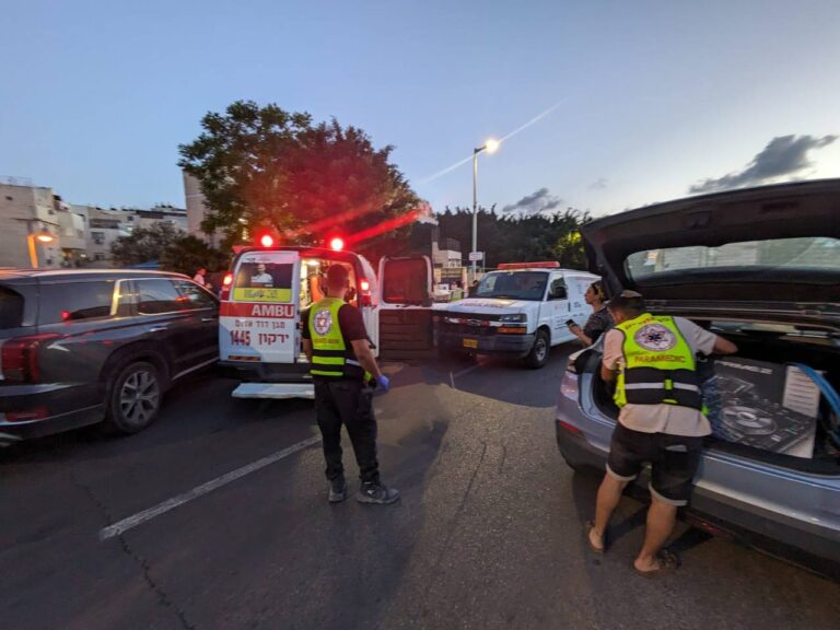 שישה צעירים בגילאי 15 נפלו מגובה ברחוב חוני המעגל באלעד • "בסיוע צוות האמבולנס של איחוד הצלה (שפינה שני צעירים לבית חולים) הענקנו להם סיוע רפואי ראשוני בזירה ובשלב זה מצבם מוגדר בינוני וקל", מסרו החובשים