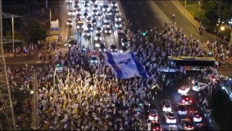 אלפי מפגינים חוסמים את צומת רעננה לצפון ולדרום • שיבושים ברחבי הארץ נגד החקיקה המשפטית ונאומו של נתניהו
