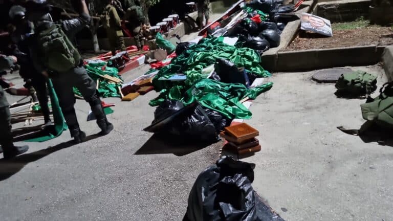 נמשכת הפעילות נגד ארגוני ופעילי הטרור בשטח איו"ש: במהלך הלילה הכוחות עצרו 37 מבוקשים והחרימו אמצעי לחימה וחומרי הסתה רבים • בביר זית איתרו הכוחות ציוד רב ומיצגים של החמאס המשמשים את תאי הסטודנטים לתהלוכות והפגנות צבאיות