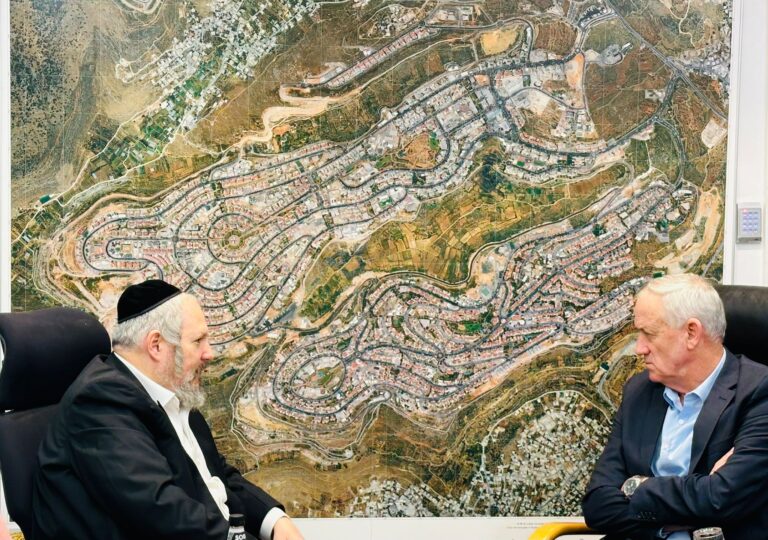 ראש עיריית ביתר עילית מאיר רובינשטיין אירח היום בלשכתו את השר בני גנץ, לישיבה בנושאי ביטחון • הביקור הממלכתי לכאורה לא עובר בשקט ובמפלגת האופוזיציה תוקפים בחריפות: "כדאי שראש העיר יפגוש קודם את התושבים המבועתים"