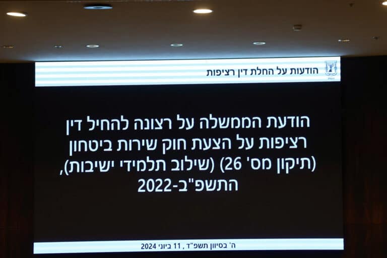 מליאת הכנסת אישרה להחיל דין רציפות על הצעת הגיוס שעברה בקריאה ראשונה בכנסת הקודמת, בממשלת בנט-לפיד, שיוזמה היה שר הביטחון בני גנץ • למרות איומים של כמה מבין חברי הליכוד, בסופו של דבר כלל חברי המפלגה תמכו בהצעה, מלבד שר הביטחון יואב גלנט שהצביע נגד הממשלה