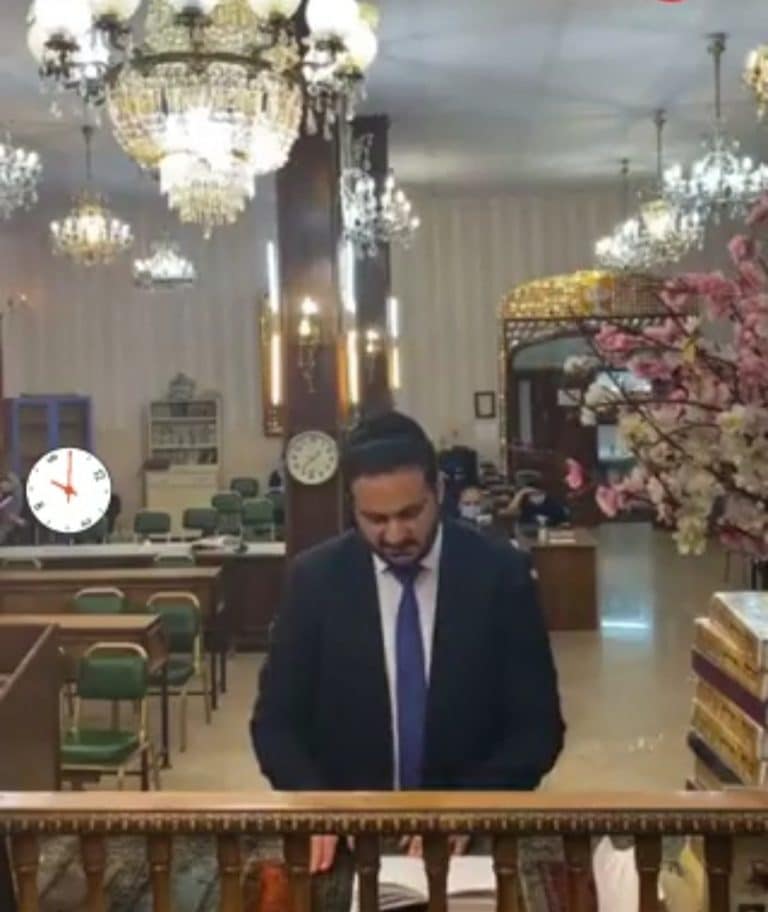 הרב הראשי של טהרן הרב יהודה גארמי עובר לפני התיבה בסליחות אחרונות בבית הכנסת המרכזי בבירת איראן