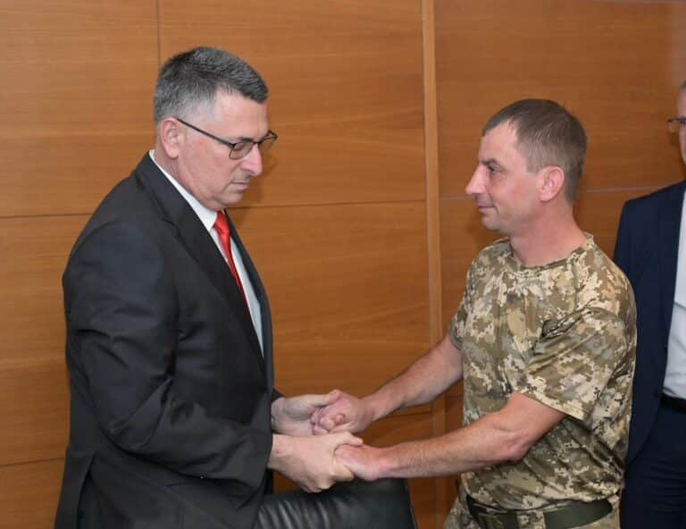 שר החוץ גדעון סער נפגש היום בקייב עם ארטיום בוריק, אזרח אוקראיני שאיבד את בתו בת ה-7, נסטיה, אשתו ושלושה מבני משפחתו מפגיעת טיל איראני בבת ים במהלך מבצע "עם כלביא" • סער הביע את תנחומיו והשתתפותו בכאב על האובדן הטרגי