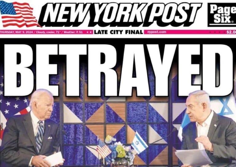 הכרזתו של נשיא ארה"ב ג'ו ביידן, לפיה ארצות הברית תעצור את משלוחי הנשק לישראל, במידה וזו תפעל באופן נרחב ברפיח, ממשיכה לעורר סערה פנימית בארצות הברית • עיתון הניו יורק פוסט תקף את ביידן בחריפות ובכותרת הראשית כינה זאת בגידה • טראמפ ובכירי ממשלו לשעבר, תוקפים גם כן