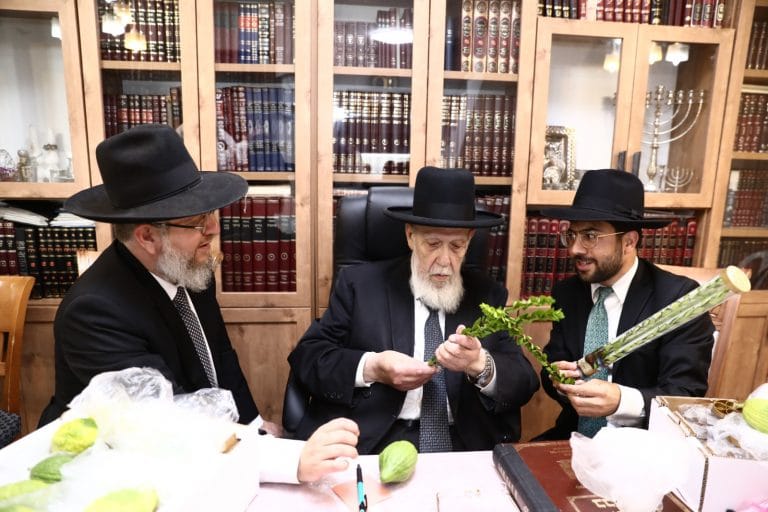 נשיא מועצת חכמי התורה, חכם שלום כהן בחר הערב ארבעת המינים לחג הסוכות מתוך מבחר גדול של ד' מינים שהובאו למעונו • צפו בגלריה של הצלם יעקב כהן