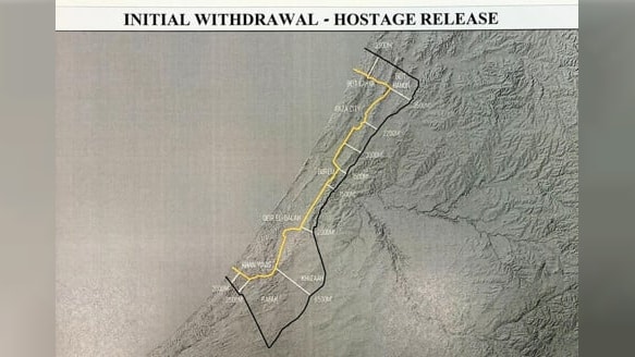 נשיא ארה"ב, דונלד טראמפ, פרסם הלילה את מפת קווי הנסיגה הראשוניים של צה"ל מתוך תוכניתו, וטען כי ישראל הסכימה לצעד זה, שיוביל מיידית להפסקת אש ולשחרור חטופים • גורמים ישראלים הבהירו לאמריקנים על כוונתם להישאר במרחב החיץ כולל ציר פילדלפי