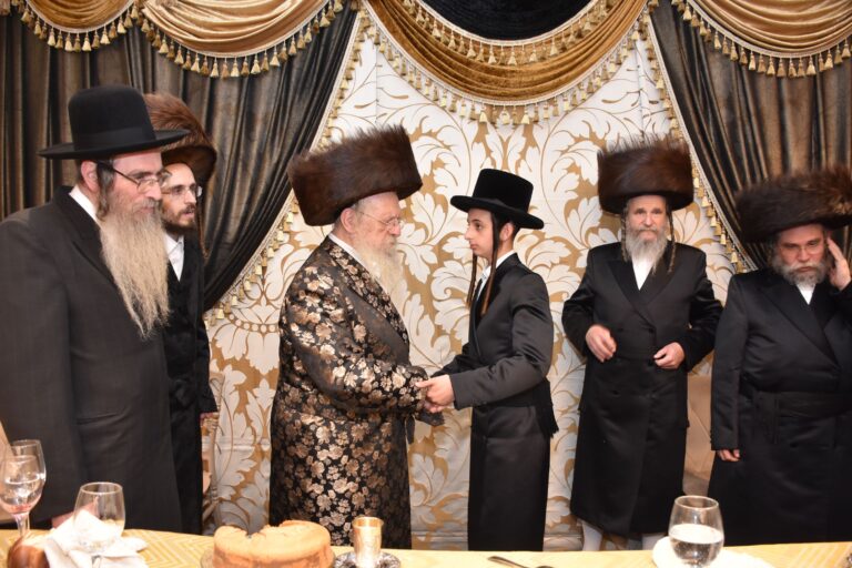 אדמו"רים רבנים וקהל גדול השתתפו בשמחת בר מצווה לנין כ"ק אדמו"ר משאץ שליט"א נכד לבנו הרה"צ רבי שלום אלעזר מאסקאוויטש שליט,א בן לחתנו הרה"ג רבי יעקב ישראל רייכמאן שליט"א ונכד להרה"ג ר' חיים דוד רייכמאן שליט"א • צילום יהודה פרקוביץ