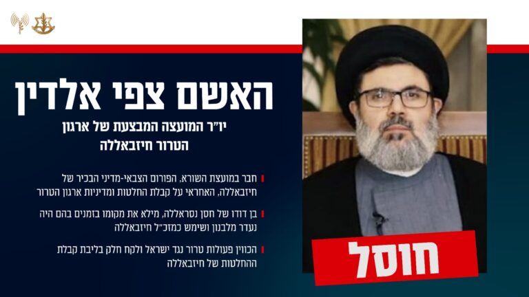 צה"ל חיסל את ראש המועצה המבצעת של חיזבאללה, האשם צפי אלדין