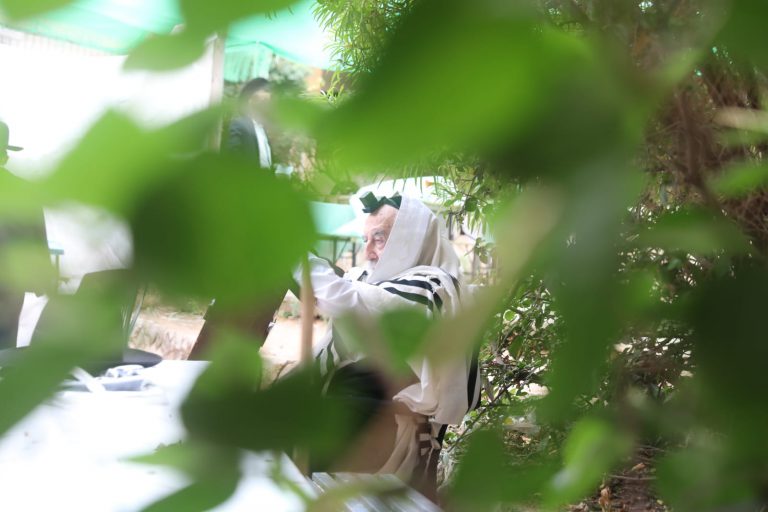 צפו: הגר"מ גריינמן שומע קריאת התורה בחצר ביתו