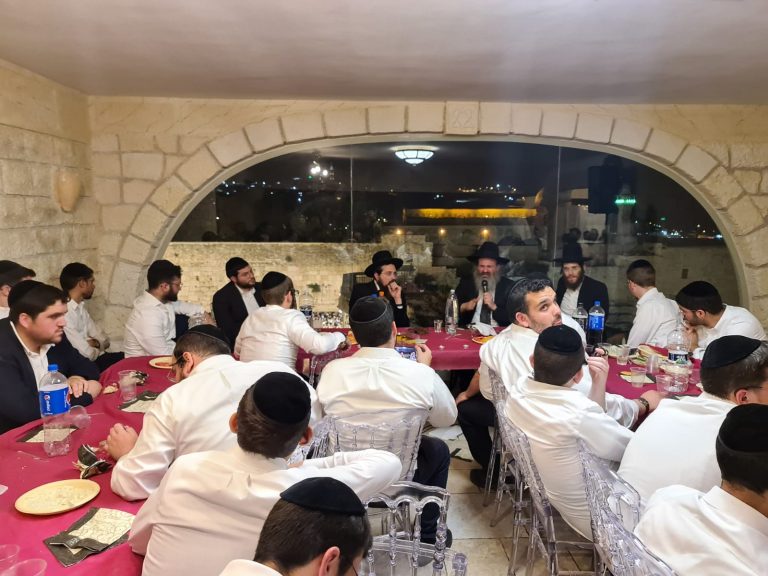 מאות תלמידי "ועד מבקשי השם" בראשות הגה"צ ר"א בירנצוייג שליט"א נקבצו אמש לסעודת סיום מסכת יומא ושירי כיסופים מול מקום הקודש והמקדש