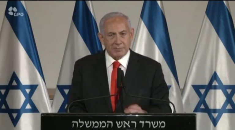 צפו בנתניהו מזהיר את חמאס "דמם בראשם"