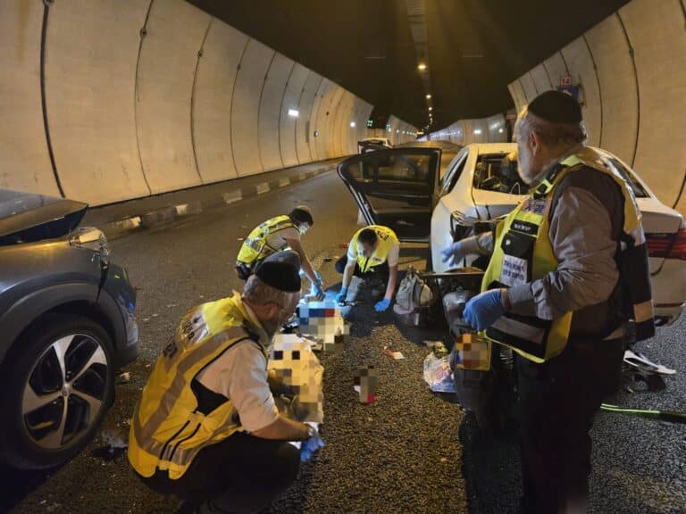 תאונה קטלנית בחזור משכם: רכב של חסידי שובו בנים התנגש במעקה הבטיחות ועף מעבר לגדר • מותם של שלושה צעירים בשנות ה-20 לחייהם נקבע במקום • כוחות ההצלה פינו שלושה פצועים לבית החולים