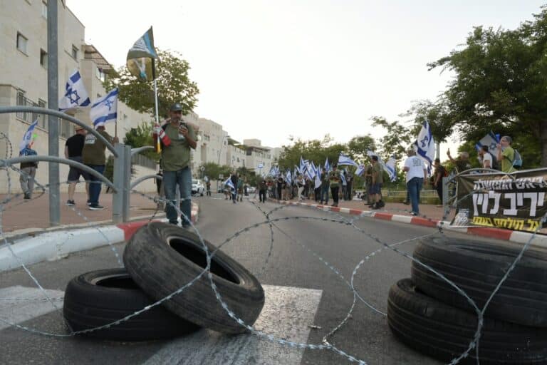 מאות מפגינים אנרכיסטים הגיעו להפגין הבוקר מול ביתו של שר המשפטים יריב לוין במודיעין • הם הבעירו צמיגים, חסמו כבישים בגדר תיל, הפעילו סירנות וצפצפו בזמבורות • שישה עצורים עד כה
