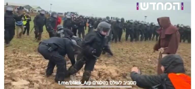 בתיעוד נראים השוטרים הגרמנים תקועים בבוץ בעת ניסיון לפזר הפגנה של פעילי סביבה. צפו
