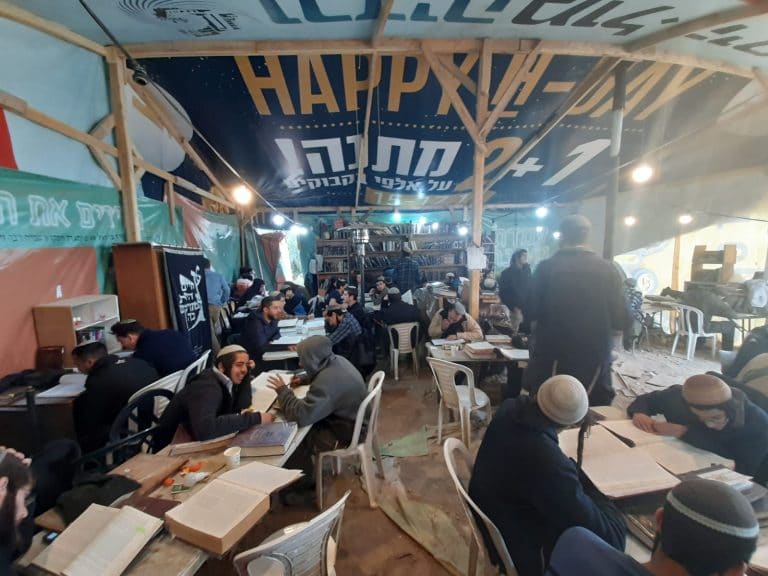 טרם חלפו שבועיים מאירוע הצעדה הענק לחומש והדרך אל חומש עמוסה במבקרים ותומכים שמגיעים אל הישיבה ומשתתפים בלימוד וחיזוק תלמידי ישיבת חומש • צילום: ישיבת חומש