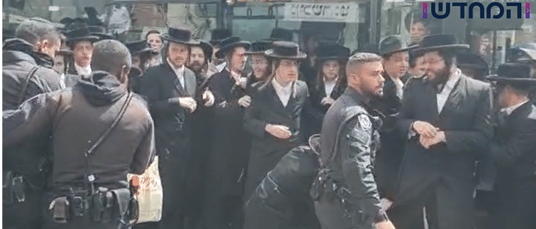 עשרות קנאים הגיעו כעת לרחוב מלכי ישראל בירושלים עם מספר רבנים להפגין מול חנות הטלפונים ענק הסלולר | כוחות משטרה רבם פינו באלימות את המתפרעים | צפו בתיעוד של הצלם זושא לוסטיג