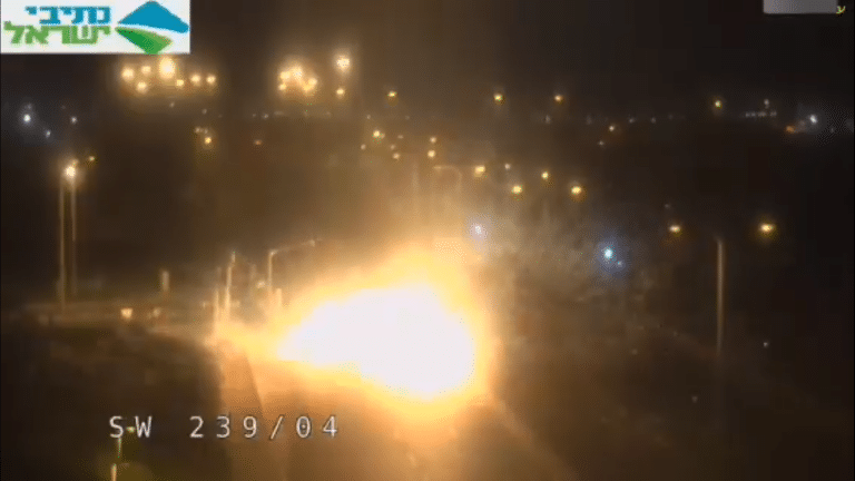 המטח אל עבר אשדוד בליל שבת תועד על ידי מצלמות כביש 4 של 'נתיבי ישראל'. הטיל פוגע בכביש ויוצר פיצוץ גדול. לא היו נפגעים בתקרית.