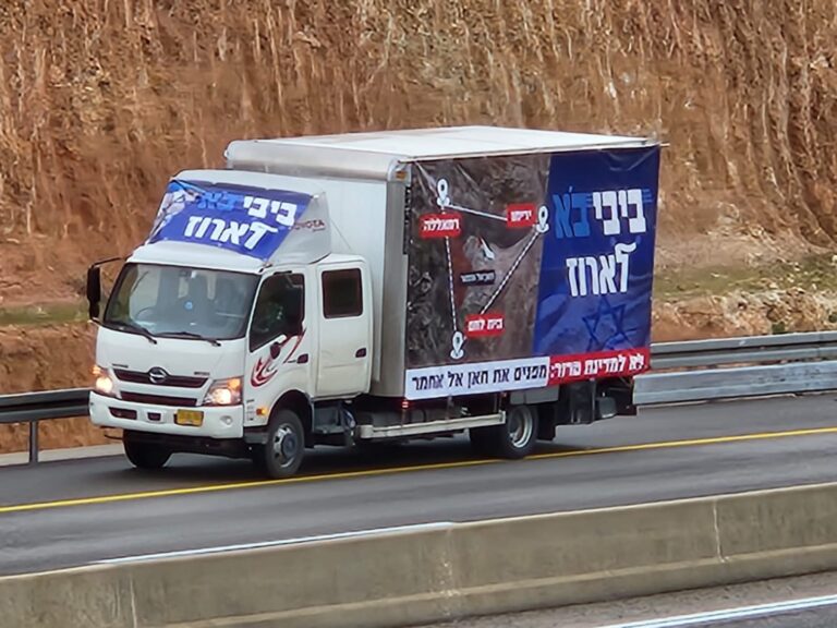 לקראת הודעת המדינה לבג"ץ הצפויה מחר (רביעי), בעניין מועד פינוי חאן אל אחמר, תנועת רגבים מציגה את משאית ה'בִּיבִּי בֹּא' וקוראת לנתניהו: "לארוז את רעיון המדינה הפלסטינית"