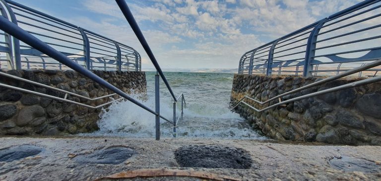 גלים בגובה 3 מטר בכנרת בעקבות גשמי הברכה של הימים האחרונים ורוחות חזקות שנשבו היום באזור האגם • תיעוד מרנין