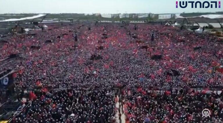 מפלגתו של ארדואן טוענת כי יותר מ-1.7 מיליון איש הגיעו לכנס הבחירות הגדול • למרות זאת, הסקרים מנבאים קרב צמוד • צפו בתיעוד