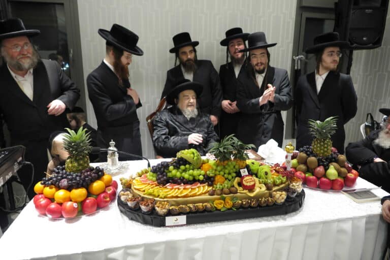 במתכונת מצומצמת: האדמו''ר מזוטשקא אמסנא בעריכת שולחן הפירות לרגל ט''ו בשבט • צילום: אריה וולקן