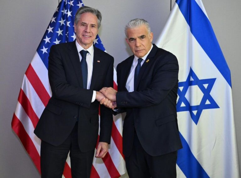 ראש האופוזיציה יאיר לפיד נפגש עם מזכיר המדינה האמריקני אנתוני בלינקן המבקר בישראל • בניגוד למקובל, במקום להגן על עמדותיה של ישראל, בחר לפיד לתקוף את ראש הממשלה בנימין נתניהו