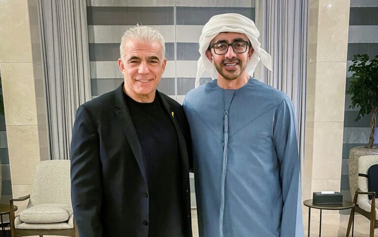 ראש האופוזיציה, יאיר לפיד, ערך אתמול גיחה מהירה לאבו דאבי, שם נפגש עם נשיא איחוד האמירויות, מוחמד בן זאיד ועם שר החוץ האמירתי, עבדאללה בן זאיד • לפיד התראיין לכלי תקשורת במדינה והצהיר כי לו היה ראש ממשלה, הטבח לא היה מתרחש