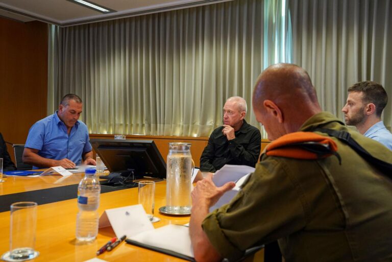 שר הביטחון יואב גלנט, הגיע היום לבסיס פיקוד המרכז בירושלים שם קיים הערכת מצב עם בכירי מערכת הביטחון, ובסיומה ערך פגישה עם ראשי הרשויות ביהודה ושומרון • שר הביטחון הביע את הערכתו לגיבוי שהעניקו ראשי הרשויות לכוחות הביטחון: "לגיבוי יש חשיבות מכריעה"