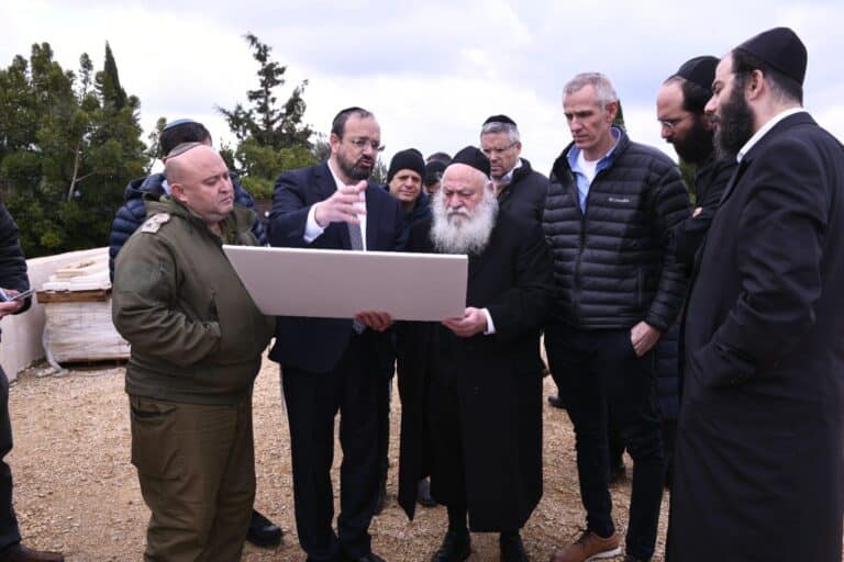 שר הבינוי והשיכון הרב יצחק גולדקנופף בסיור עבודה יחד עם ראש המועצה הרב יצחק רביץ לקראת הרחבת היישוב • ראש המועצה אמר בפתח הסיור כי היישוב סובל היום מצפיפות חריפה, והפתרון עבור התושבים הוא הרחבת היישוב