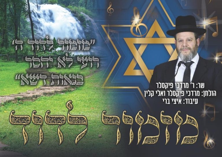 החזן ובעל המנגן ר׳ מרדכי פיקסלר מבצע את הסינגל החדש ״מזמור לדוד״. על הלחן: מרדכי פיקסלר ואלי קליין, עיבוד: אלי קליין ואיצי ברי.