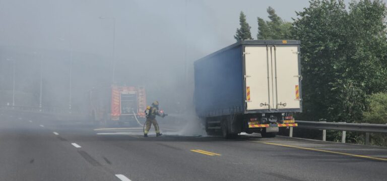 כביש 1: משאית עלתה באש וגרמה לפקקים רבים • צפו