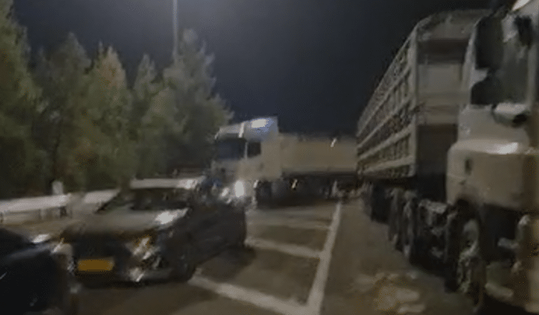 באמצע כביש 1: פעילי צו 9 חסמו במשך שעות את משאיות הסיוע לחמאס