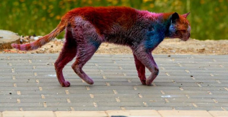 כתב ידיעות אחרונות מתן צורי פרסם תמונות של חתול צבוע בשלל צבעים, תחילה דיווח כי מדובר במעשה קונדס ולאחר מכן תיקן כי מדובר במפעל צבע שהחתול ביקר בו