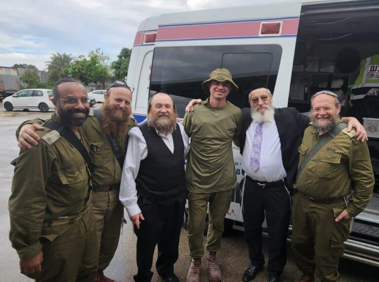 יו"ר ארגון 'לב מלכה' הרב אהרון אברמן, יחד עם הרב שלמה ברויאר ומתנדבי הארגון, הגיעו בימים האחרונים לשטחי הכינוס של החיילים בעוטף עזה • במהלך אחד הביקורים, עצר אותם חייל וזו הייתה הסיבה המרגשת