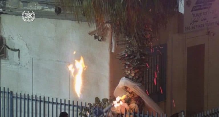 צפו: ניסו להצית את נקודת המשטרה בלוד עם דגל ישראל בוער. חוקרי ימ"ר עלו על זהותם של החשודים והם נעצרו. השבוע הוגשה הצהרת תובע בדבר הכוונה להגיש נגד החשודים כתב אישום.