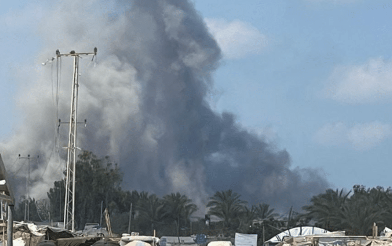 ברשתות החברתיות בעזה פורסם תיעוד בו ניתן לראות את הרגעים הראשונים לאחר התקיפה בה ניסו לחסל את מוחמד דף וראפע סלאמה • כך נראתה התקיפה מאזור אוהלי העקורים של המוואסי • חדי העין יכולים להבחין שחיל האוויר השתמש בחימושים כבדים