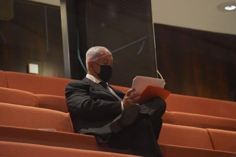 לקראת ההצבעות על התקציב, ראש הממשלה לשעבר הגיע לכנסת ומשתתף בדיונים דרך יציע המבודדים בגלל חזרתו מארה"ב המחייבת בידוד