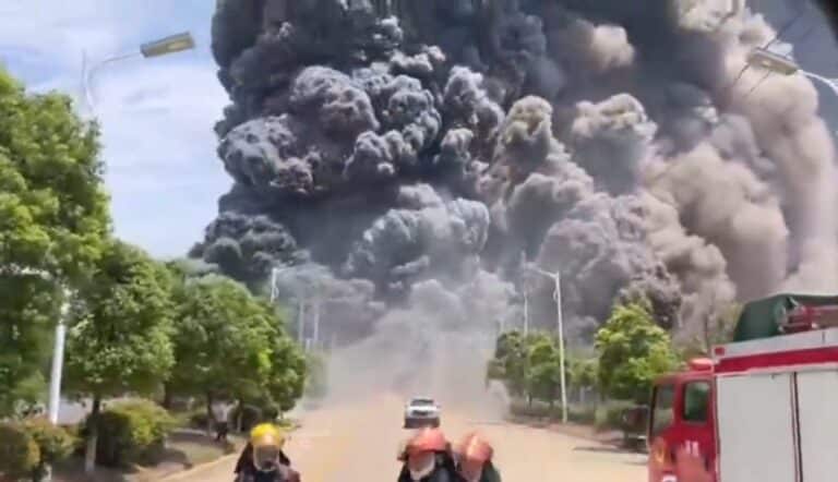 פיצוץ עז אירע במפעל כימי במחוז ג'יאנגשי שבדרום מזרח סין • בעקבות הפיצוץ, פטריית עשן ענקית ולהבות אש השתוללו • צפו בתיעוד