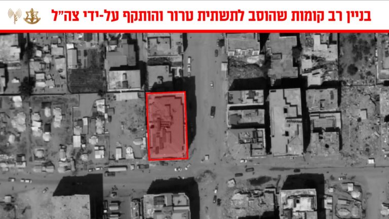 דובר צה"ל פרסם אזהרה מוקדמת לתושבים והבהיר כי חמאס השתמש בבניין האזרחי לצורכי טרור • התקיפה בוצעה לאחר פינוי האוכלוסייה, והשימוש בחימוש מדויק נועד למזער את הפגיעה בבלתי מעורבים