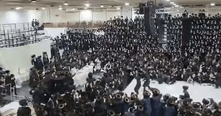 החסידים התנפלו על התפוחים שהאדמו"ר זרק