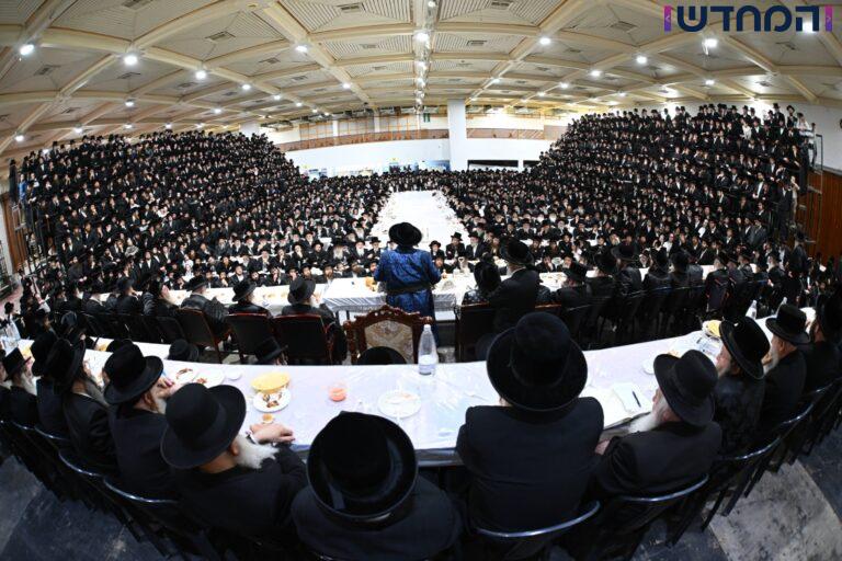 אלפי חסידי צאנז השתתפו בטיש החסידות שנערך על ידי האדמו"ר מצאנז בקריית החסידות בעיר נתניה • הצלם משה גולדשטיין תיעד