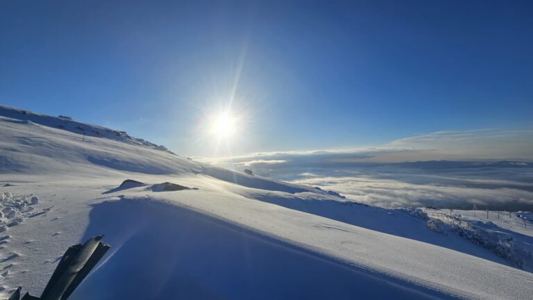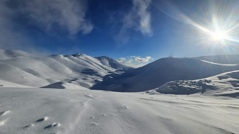 מערכת השלג המשמעותית והארוכה יוצאת מאזורנו, העננים בפסגת החרמון נעים ושמיים כחולים מאירים את ההר המושלג. במפלס העליון נערמו כ-2 מ' של שלג, במפלס התחתון כ-1.5 מ' • תיעוד לבן