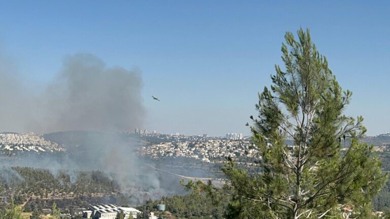 צוותי כיבוי ממחוז ירושלים ויו"ש פועלים בשעה זו בשריפת ענק שפרצה בשטח פתוח סמוך להר אדר • נכון לשעה זו לא הושגה שליטה על האש אך אין סכנה מיידית לבתי התושבים באזור • המשטרה סגרה לתנועה מספר כבישים הסמוכים לשריפה