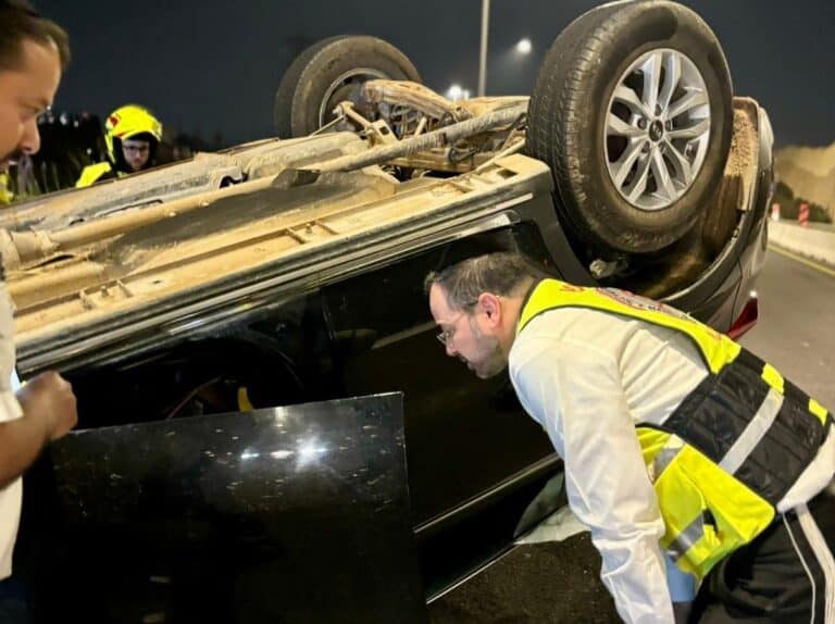 רכב התהפך: השר המתנדב במד"א הגיע לזירת התאונה